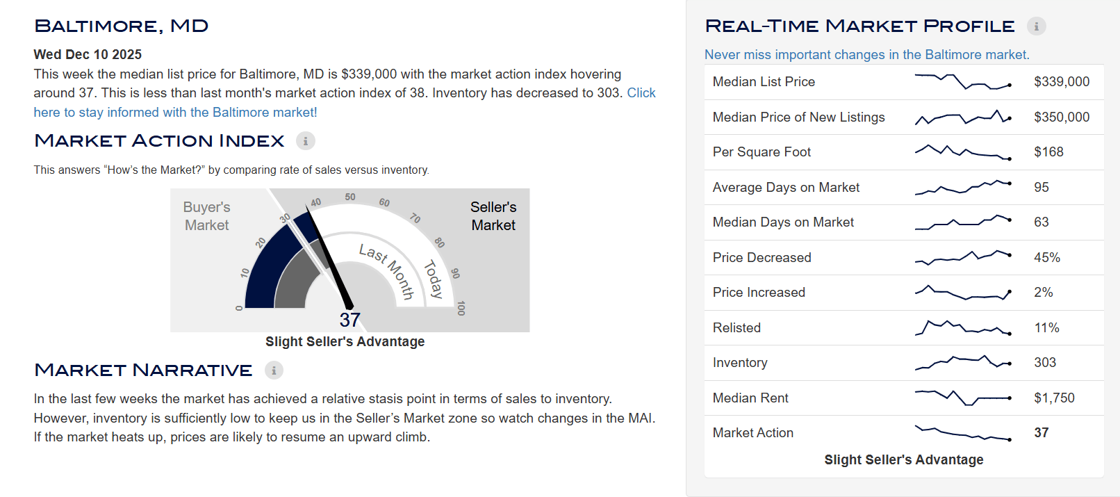 Baltimore’s market is holding steady with rising prices and moderate competition. The median home sits around $240,000, up 9.1% year over year, with homes getting about two offers and selling in roughly 49 days. It’s a market that rewards strategy and timing, not rushing.